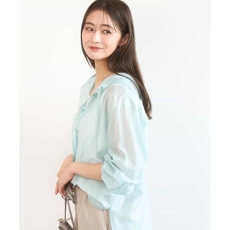 フーディーデザインシアーシャツブラウス/洗える