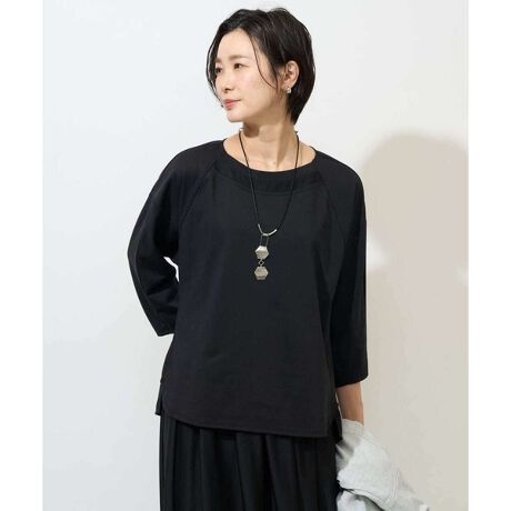 ・肘まで隠れる6分袖なので気になる腕周りもカバーし、一枚で着用しても安心です。