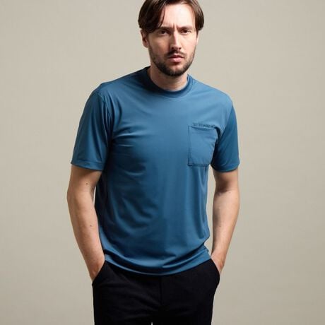 ポケット付きドレスクルーネック半袖プルオーバーになります。