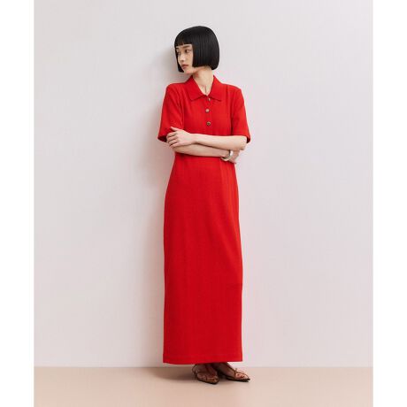※ご好評いただいたハーフスリーブポロシャツワンピース(品番:GAE55040)から、ボタンをメタルボタンにアップデート。
