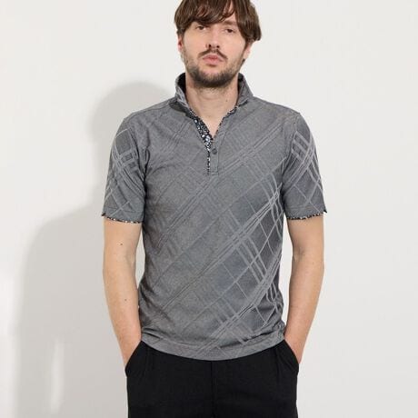Vゾーンを綺麗に見せるスキッパーポロシャツになります。