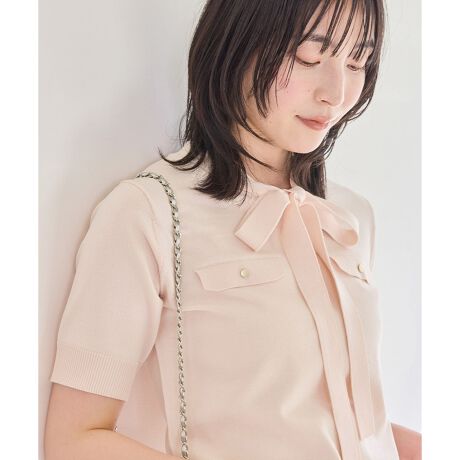 ・身頃と同素材ニットのリボンがついたプルオーバー