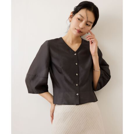 身体のラインを拾いすぎない絶妙なサイズ感で、リラックス感ときちんと感を両立。立体感のある袖デザインがフェミニンな印象を与え、気になる二の腕まわりもさりげなくカバーします。1枚で華やぎを纏える主役ブラウスです。