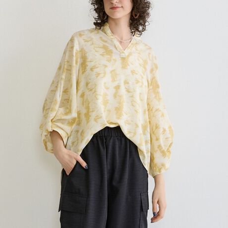【柄タックパフブラウス】