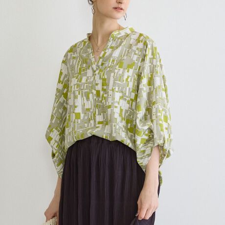 【柄タックパフブラウス】