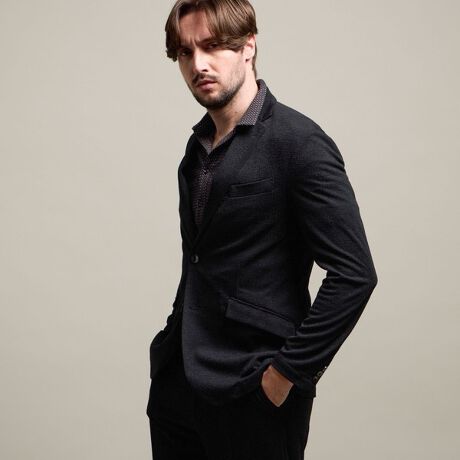 カーディガンの様にサラッと羽織れるラペルジャケットです。