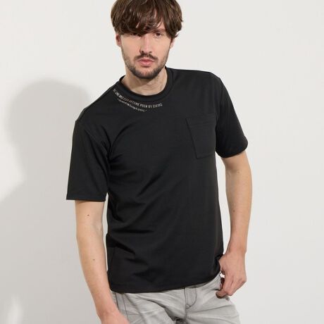 衿と裾にメタルジェルプリントを施したポケット付き半袖プルオーバーになります。