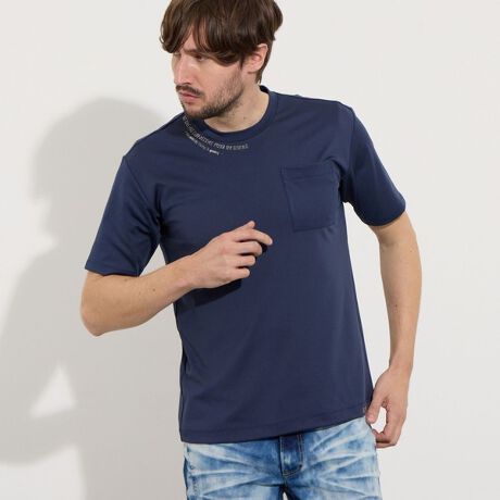 衿と裾にメタルジェルプリントを施したポケット付き半袖プルオーバーになります。