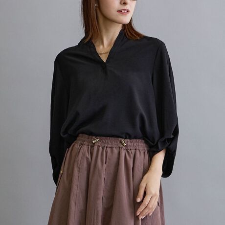 程よくシワ感のあるエアリーボイルを採用、ふわりと柔らかく、表情感のある素材はキレイメになりすぎずマルチに活躍します。