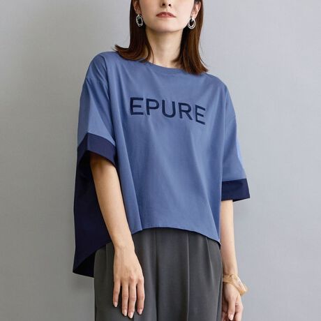 異素材使いの配色Tシャツ。
