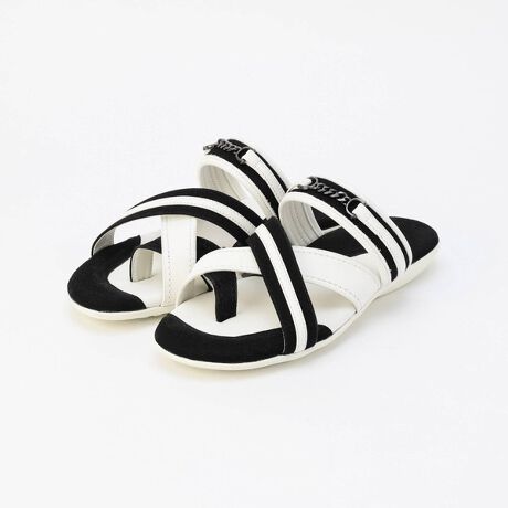 ビット金具をアクセントにした配色デザインのトングサンダル。