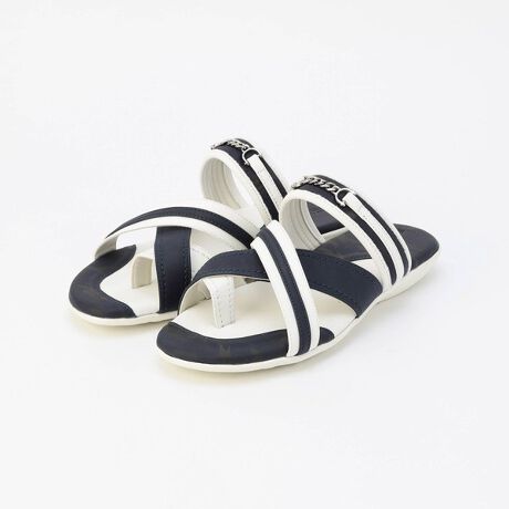 ビット金具をアクセントにした配色デザインのトングサンダル。
