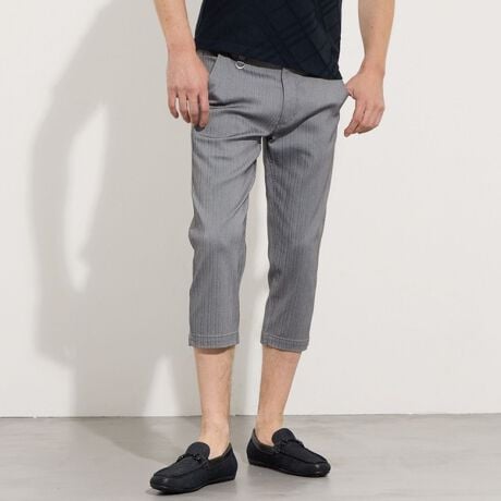 ふくらはぎ丈ぐらいのクロップドパンツ(七分丈)。