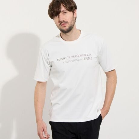 シャープな印象をあたえるメタルジェルプリントが目を惹くクルーネックTシャツになります。