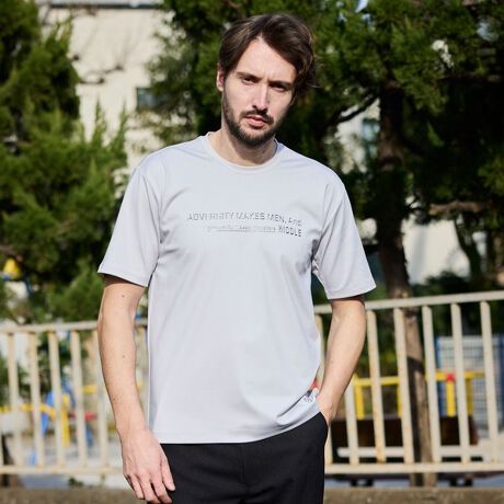 シャープな印象をあたえるメタルジェルプリントが目を惹くクルーネックTシャツになります。