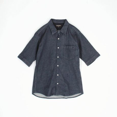 胸ポケット部分に刺繍を施した、ショートレギュラーカラーの5分袖デニムシャツ。