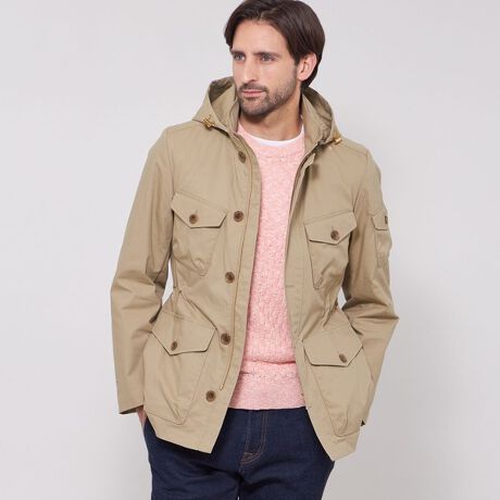 英国陸軍のミリタリーアウターをモチーフとした人気モデル『BERWICK(バーウィック)』です。コートの様にジャケットの上から羽織ったり、一枚でブルゾンとして着用できる汎用性の高いアウターウェアーです。フードも取り外し可能となっており、スタンド衿のアウターとしてもご着用頂けます。中綿入りのライナーが装備され3シーズン着用できる仕様になります。