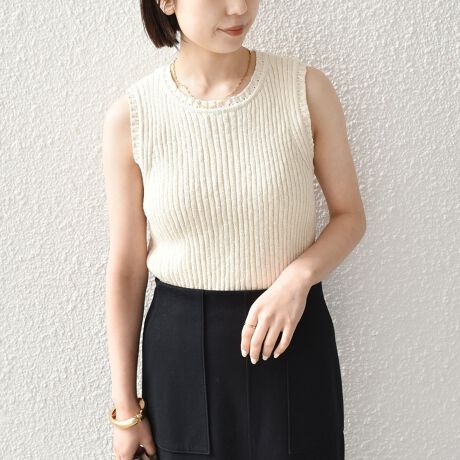 表情のあるスラブ素材が魅力のニットタンクトップ。