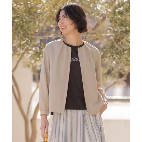 大人の春コーデにこなれ感をプラスしてくれるノーカラーブルゾン