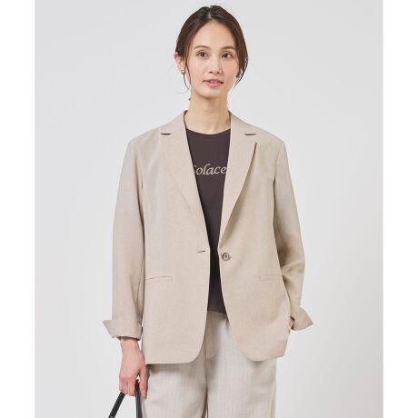 ■デザインベーシックなデザインで汎用性の高い、シングルフロントの1つ釦テーラードジャケット。タイト過ぎない絶妙なサイズ感で、3面体構造による立体的で美しいシルエットが、きちんとした印象を叶えます。裏地のない仕立てのため非常に軽く、自然なフィット感で動きやすく快適な着心地も魅力。袖口にはベントが入っており、折り返して軽やかな抜け感を演出できます。シンプルな玉縁ポケットですっきりと仕上げたデザインは、ブラウスを合わせたオフィススタイルはもちろん、Tシャツの上に羽織ったカジュアルな着こなしにもマッチし、幅広いシーンで活躍します。