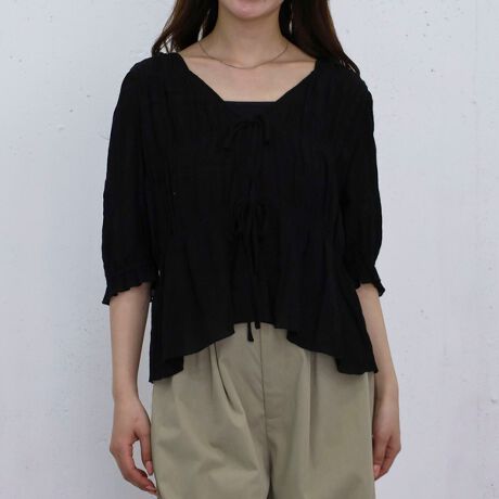 ・シアーな生地感とシャーリングのくしゅっと感が可愛いブラウス