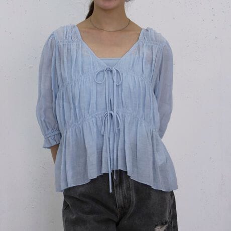 ・シアーな生地感とシャーリングのくしゅっと感が可愛いブラウス