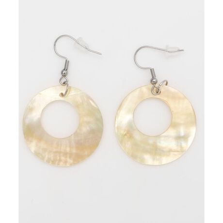 [型番:YBXZ6102-2026]丸みのあるフォルムにシェルの艶感が映えるサークル型ピアス。シンプルながらも天然素材ならではの表情が楽しめ、耳元に自然なきらめきを添えます。日常使いはもちろん。リゾートスタイルのアクセントにもおすすめです。