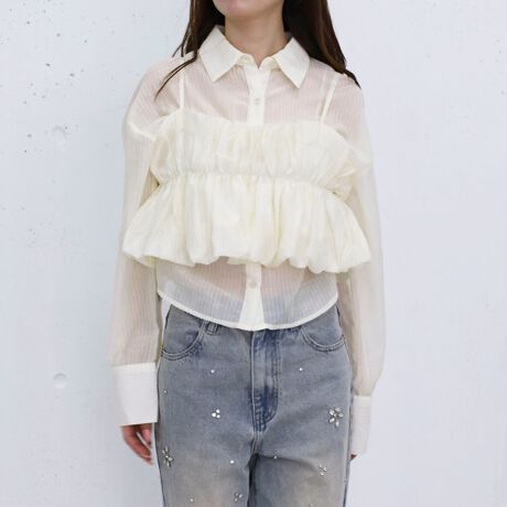 ■華やかさをプラスする、バルーンビスチェ×シアーストライプシャツSET■