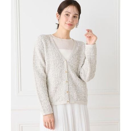 ■デザイン異素材を組み合わせて編み立てた、奥行きのある立体的な編地が魅力のニットカーディガン。ニットジャケットのような華やかさを備えながら、ニットならではの柔らかな着心地を楽しめる、ジャケットとカーディガンの間のような一着です。華奢に仕上げた縁取りが上品で洗練された印象を添え、アクセントとして効かせたメタルボタンが全体を引き締めます。■素材異素材を組み合わせて丁寧に編み立てた、ツイード柄が印象的な編地。垂れ感の出にくい軽やかな仕上がりで、奥行きのある上品さと着やすさを両立した、オリジナルカラー展開が魅力です。・水洗い可■サンプル撮影商品画像の商品はサンプルです。実際の商品とはサイズや色味、素材、デザイン等の仕様が若干変更になる場合がございます。■カラーについては、可能な限り実際の商品に近いカラーで撮影をおこなっておりますが、照明の関係により実際の製品とは色味が違って見える場合があります。またパソコン・スマートフォンなどの環境により、若干製品と画像のカラーが異なる場合もございます。現物と画像のカラー差異については返品理由となりませんので、予めご了承ください。■サイズ表記はあくまで目安となります。