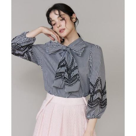 ■デザイン程よい張り感とストレッチ性のある、シワになりにくい生地に、オリジナル柄のボーラーレースを使用。丁寧に刺繍したスカラ柄をあえてスカラ仕様にせず、上品に仕上げました。浅めのVネックから続くボウタイ先や袖口のレース柄が動くたびに華やかさを引き立てます。裾はたっぷりとした分量で、イン・アウトどちらでも美しいシルエットが決まり、幅広いボトムとバランスよく着こなせます。■素材程よい張り感とストレッチ性のある、シワになりにくい生地に、オリジナルの柄でボーラーレースにしたファブリック。・後ろファスナーあり・水洗い可※ピンクはWEB限定・POPUP限定カラーになります。■サンプル撮影商品画像の商品はサンプルです。実際の商品とはサイズや色味、素材、デザイン等の仕様が若干変更になる場合がございます。■カラーについては、可能な限り実際の商品に近いカラーで撮影をおこなっておりますが、照明の関係により実際の製品とは色味が違って見える場合があります。またパソコン・スマートフォンなどの環境により、若干製品と画像のカラーが異なる場合もございます。現物と画像のカラー差異については返品理由となりませんので、予めご了承ください。■サイズ表記はあくまで目安となります。