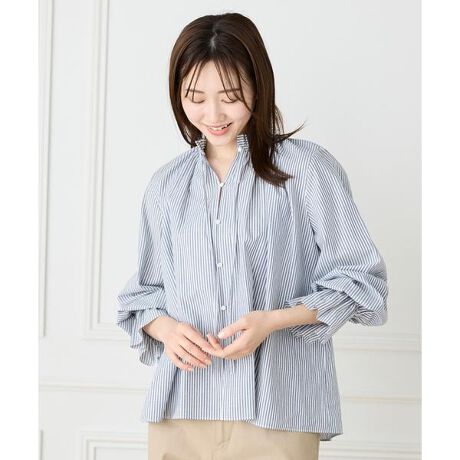 ■デザイン衿もとのフリル&リボンデザインがポイントのギャザーブラウス。釦を上まで留めてリボン結びにするとクラシックな印象に。少し釦を外してリボンを垂らすと抜け感のあるスタイリングに。肩はセットインにすることでジャケットインやニットとのレイヤードスタイルにも合わせやすい設計に仕上げました。袖口はゴムインのフレアー袖で長袖〜5分袖まで着こなしのアレンジが可能です。■素材綿100%の先染め素材。綿特有の肌ざわりの良さと、軽量で通気性に優れているデニムライク素材です。インディゴ見えする反応染料のため、色落ちしにくいメリットも。柔軟剤仕上げで、カジュアルでありながらナチュラルな柔らかい表情を演出してくれる素材です。・水洗い可・フロントボタン同素材のペプラムブラウス品番:10-62182028■サンプル撮影商品画像の商品はサンプルです。実際の商品とはサイズや色味、素材、デザイン等の仕様が若干変更になる場合がございます。■照明の関係により、実際の製品とは色味が違って見える場合があります。またパソコン・スマートフォンなどの環境により、若干製品と画像のカラーが異なる場合もございます。■サイズ表記はあくまで目安となります。