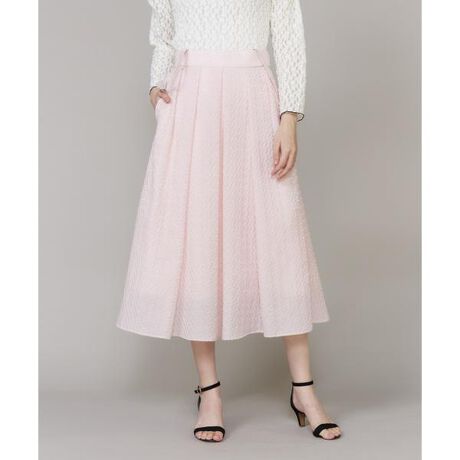 ■デザイン今年の代表カラーのこだわり抜いた“ピンク”が主役のスカート。日本有数の織物産地・桐生で丁寧に織り上げたオリジナルジャガード生地を使用し、上品さと存在感を両立させた特別な1枚です。スカート内部には柔らかなチュールを重ねて空気を含むふんわりシルエットを実現。歩くたびに軽やかに揺れる、女性らしい立体感が魅力です。さらに、着こなしの幅を広げる調節可能サスペンダー付き。取り外しや長さ調整ができるので、気分に合わせてスタイリングを楽しめます。ニットや花柄の刺繍ブラウスとのスタイリングがマストです。・ポケットあり ・裏地あり・左ファスナー付き・ウエスト後ろ部分ゴム仕様■素材経糸にスパークナイロン、横糸に綿とポリエステルを使用した先染めのブランドオリジナル柄のフクレジャガードです。経糸のスパークナイロンによる華やかな光沢感とナチュラルな天然素材の風合いを持ち合わせています。綿と合繊の組み合わせにより、薄く軽やかな春夏らしい風合いを実現。シワになりにくく、快適にお使いいただけます。■サンプル撮影商品画像の商品はサンプルです。実際の商品とはサイズや色味、素材、デザイン等の仕様が若干変更になる場合がございます。■カラーについては、可能な限り実際の商品に近いカラーで撮影をおこなっておりますが、照明の関係により実際の製品とは色味が違って見える場合があります。またパソコン・スマートフォンなどの環境により、若干製品と画像のカラーが異なる場合もございます。現物と画像のカラー差異については返品理由となりませんので、予めご了承ください。■サイズ表記はあくまで目安となります。