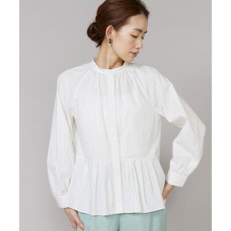 ■デザインやや詰まった上品なバンドカラーと襟元のギャザーがポイントのブラウスで、ラグランスリーブと程良いボリュームのパフスリーブによるストレスフリーな着心地に加え、前はタック・後ろはフレアで甘すぎないペプラムデザインを施し、ミニマムな印象の比翼あきと袖口のカフスですっきりとした印象に仕上げています。■素材環境にやさしい植物由来のポリエステルを使用した上品ですっきりとした印象のストライプ生地。程良いハリ感が立体的なシルエットを演出し、きちんと感がありながらソフトな手持ち感とストレスを感じさせない軽さ、さらにシワになりにくいイージーケア性を兼ね備えています。・水洗い可同素材のロングシャツ品番:6962182815■サンプル撮影商品画像の商品はサンプルです。実際の商品とはサイズや色味、素材、デザイン等の仕様が若干変更になる場合がございます。■カラーについては、可能な限り実際の商品に近いカラーにて撮影をおこなっておりますが、照明の関係により実際の製品とは色味が違って見える場合があります。またパソコン・スマートフォンなどの環境により、若干製品と画像のカラーが異なる場合もございます。現物と画像のカラー差異については返品理由となりませんので、予めご了承ください。■サイズ表記はあくまで目安となります。