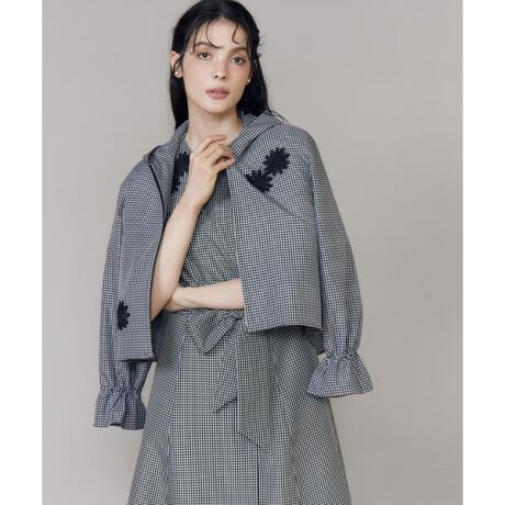 ■デザイン尾州産の強撚ポリエステルを使用し、薄さとほどよいハリにこだわって仕上げたオリジナル素材のショートパーカーブルゾン。ギンガムチェックと上品なネイビーの配色に、オリジナルデザインのフラワーモチーフレースをあしらい、軽さの中にフェミニンなアクセントをプラスしました。袖は自分好みに絞れる仕様で、バックスタイルは切り替えから裾に向かってギャザーフレアが広がるこだわりのシルエット。軽やかさと華やかさを兼ね備え、春先のスタイリングをぐっと新鮮に見せてくれる一着です。■素材薄さとハリにこだわり、織物の産地・尾州で作り上げたオリジナル素材。100デニールのポリエステル強撚糸を使用し、糸染めの段階で高温セットすることで、強撚ならではのシャリ感とハリコシのある風合いに仕上げています。・水洗い可・裏地あり・袖ドロスト調節可能同素材のワンピース品番:5162121513同素材のスカート品番:5162152514■サンプル撮影商品画像の商品はサンプルです。実際の商品とはサイズや色味、素材、デザイン等の仕様が若干変更になる場合がございます。■カラーについては、可能な限り実際の商品に近いカラーにて撮影をおこなっておりますが、照明の関係により実際の製品とは色味が違って見える場合があります。またパソコン・スマートフォンなどの環境により、若干製品と画像のカラーが異なる場合もございます。現物と画像のカラー差異については返品理由となりませんので、予めご了承ください。■サイズ表記はあくまで目安となります。