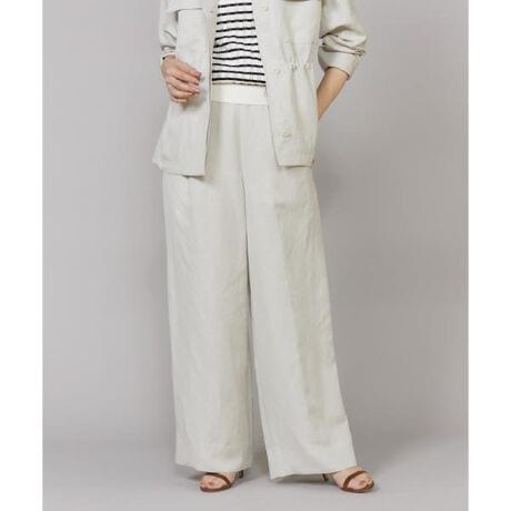 ■デザイン身体のラインを拾わないワイドシルエットのパンツ。センタープレスを施してスタイルアップを叶え、脇あきですっきりと仕上げたウエストデザインにウエストタックやステッチワークでアクセントを加え、ウエストバックはゴム仕様でイージーな着心地を実現しています。■素材経糸にキュプラ、緯糸にテンセルとリネンを交織したサテン素材で、キュプラ特有の上品な光沢感にリネンのナチュラルなスラブ感を併せ持ち、「適度な柔らかさ」と「ハリ・清涼感」を兼ね備えた、シャープさの中に自然な表情と高級感を感じさせる素材です。・ウエスト後ろゴム使用・裏地無し・ポケットあり・左サイドファスナーあり同素材のジャケット品番:6962144822同素材のワンピース品番:6962121824■サンプル撮影商品画像の商品はサンプルです。実際の商品とはサイズや色味、素材、デザイン等の仕様が若干変更になる場合がございます。■カラーについては、可能な限り実際の商品に近いカラーにて撮影をおこなっておりますが、照明の関係により実際の製品とは色味が違って見える場合があります。またパソコン・スマートフォンなどの環境により、若干製品と画像のカラーが異なる場合もございます。現物と画像のカラー差異については返品理由となりませんので、予めご了承ください。■サイズ表記はあくまで目安となります。