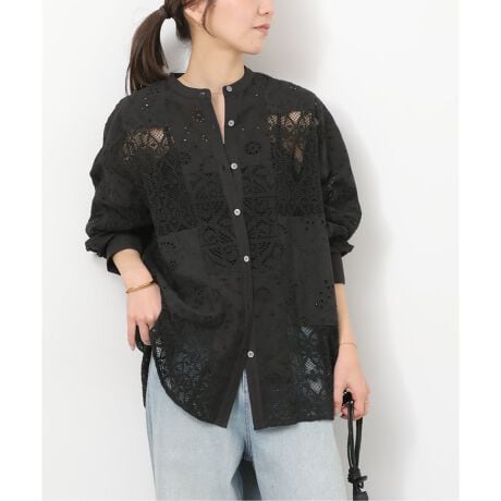 ◆1枚で着映える、パッチワークレースシャツ