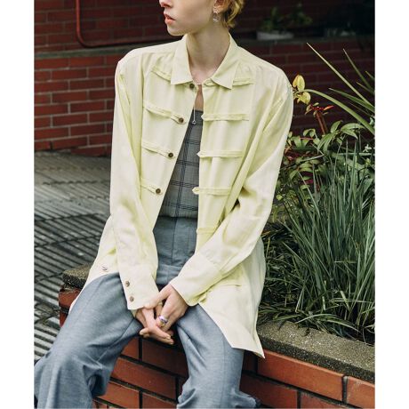 リラックスしたシルエットで長めの丈、シャツとしてもライトアウターとしても着用可能。