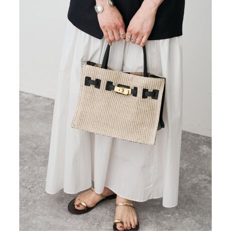 上品な風合いが魅力のラフィア調シートを使用したトートバッグ。