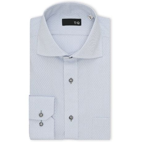 表面感のあるドビーの織り柄(ダイヤチェック)です。衿型はノータイでのオフィスカジュアルに最適なカッタウェイを採用。剣先が外に大きく開いていて、衿が目立たずスッキリとした印象です。