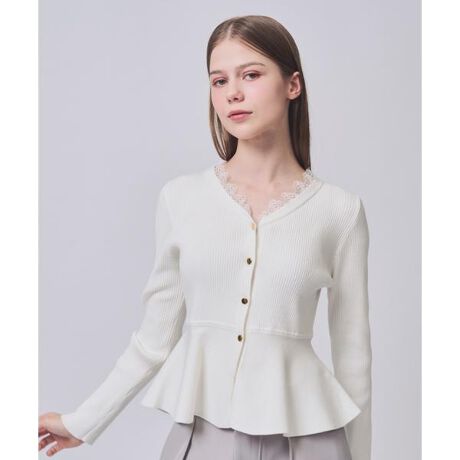 【秋冬人気アイテムが春仕様に!レースネックペプラムニット】【Point】・秋冬に大人気だったペプラムニットが春にぴったりの素材感で登場。・デコルテにあしらった繊細なレースが、顔まわりを華やかに演出します。・ウエスト切替から広がるペプラムシルエットが、自然にスタイルアップを叶える一枚。・程よくフィット感のあるリブ編みで、女性らしいラインをきれいに引き立てます。・スカート合わせでフェミニンに、パンツ合わせで大人きれいめにも着こなせる万能アイテムです。ケア方法:手洗い可能透け感:なし裏地:なし伸縮性:あり光沢感:なし生地の厚さ:中肉