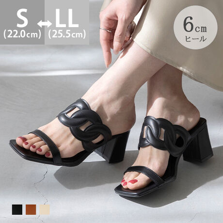 マルイウェブチャネル   /   ウェレッグ   /   シューズ   /   サンダル   /   デザインストラップ チャンキーヒール ミュールサンダル