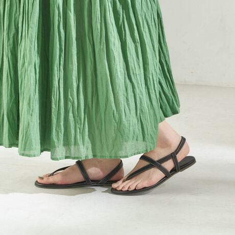 リラックス感のあるムードと上品さを兼ね備えた、レザー素材のフラットサンダル。