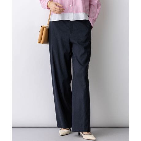 リネンの清涼感とストレッチ性を兼ね備えた、夏に欠かせない定番のワイドパンツです。フロントは前あきとベルトループを施したきちんとした仕様で、トップスをインしてもすっきりと決まります。一方、ウエストの後ろ部分はゴム仕様にすることで、締め付け感のないストレスフリーな穿き心地を実現しました。シルエットは太すぎず、程よいゆとりを持たせることで、ブラウスからカットソーまで様々なトップスとバランス良く合わせていただけます。同素材のジャケットと合わせたセットアップスタイルなら、オフィスカジュアルや通勤シーンにも最適です。カラーは、清涼感あふれるオフ(#001)、肌なじみの良い上品なベージュ(#033)、落ち着いたニュアンスカラーのモカ(#030)、シックで深みのあるダークブラウン(#035)、知的な印象を与えるネイビー(#075)、シャープで万能なブラック(#005)の豊富な6色展開です。