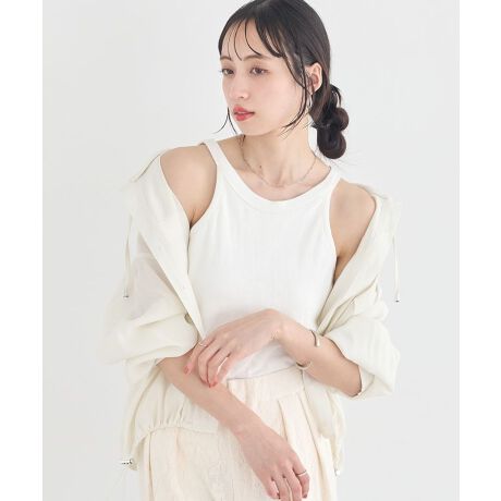 シンプルだからこそ映える美シルエット。トレンド感のあるアメリカンスリーブが特徴のテレコタンクトップです。肩のラインをきれいに見せるカッティングで、自然なスタイルアップが叶います。程よい厚みのテレコ素材は肌あたりがやさしく、インナーとしても一枚着としても安心感のある着心地です。コンパクトなシルエットながら窮屈感が少なく、動きやすさも魅力です。ジャケットやシアーシャツと合わせれば旬のレイヤードスタイルが完成します。カジュアルからきれいめまで幅広く対応できる万能タンクトップとして、毎日のコーディネートに重宝します。※カップ部分のみ、裏あり。透け感[なし]