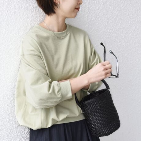 一枚でさらっと着るだけでニュアンス感と抜け感が出るドルマンのカットソー。