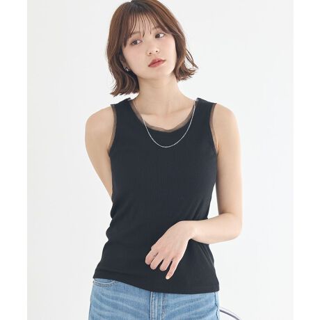 チュールエッジが映える大人可愛い一枚。テレコタンクトップにラメのきらめきをプラスした、上品で着回し力の高いデザインです。エッジ部分に重ねたチュールがさりげないアクセントとなり、ベーシックな形ながらもこなれた印象に仕上がります。やわらかく伸びのある素材で動きやすく、デイリー使いにもぴったりです。コンパクトなシルエットなので、ワイドパンツやスカートともバランスよく合わせられます。インナーとしても一枚着としても活躍し、カジュアルからきれいめまで幅広いスタイリングに対応できる優秀トップスです。透け感[なし]