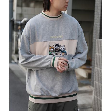 HOOK -original- ニャンコカフェ〜総刺繍バイカラー切り替えスウェット