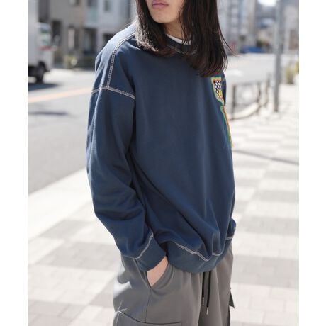 HOOK -original- ブロックベアワッペン刺繍レインボーフリンジ飾りステッチスウェット
