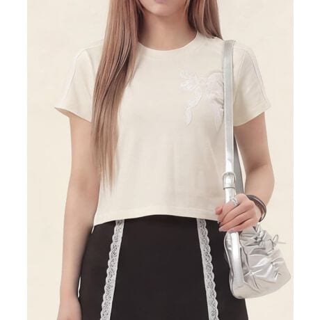 【HOOK】for girls レースリボンライン・刺繍半袖TEE (SS)