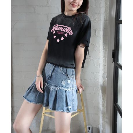 【HOOK】for girls アメカジ裾デザインカットワークプリントウォッシュTEE (SS)